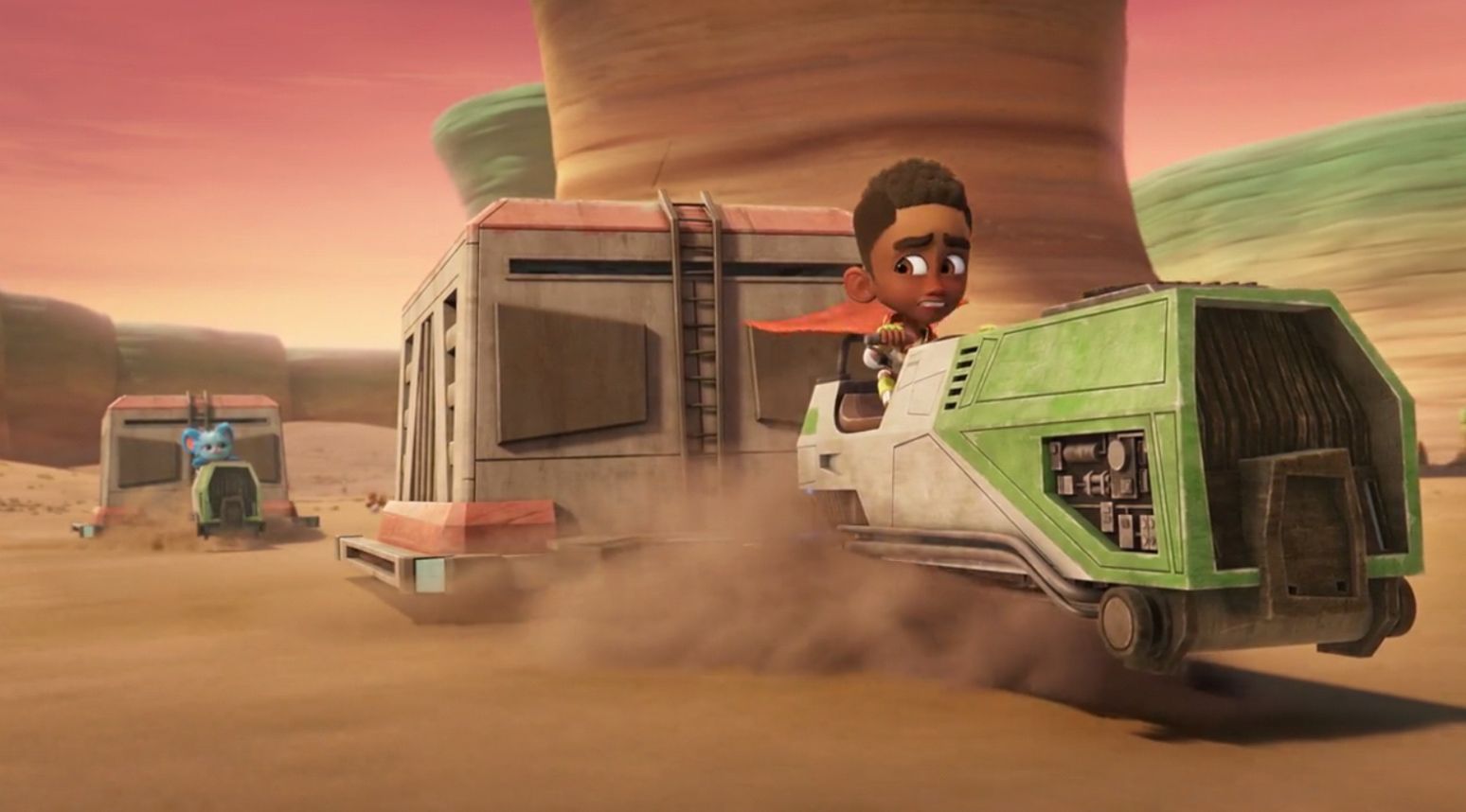 Kai and Nubs get speeder bikes and cages to round up the baby Bantha's, but are too busy looking for the Bantha's that Kai crashes his speeder bike and they must repair it.