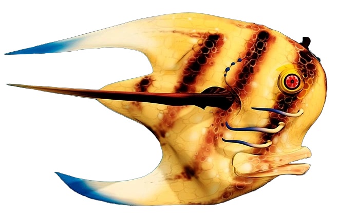 Description: The Mee, also called the mee fish, were a species of scalefish native to the planet Naboo. They lived alongside six other scalefish species in the waters around the city Otoh Gunga in Lake Paonga, and could also be found in the Abyss, where they were preyed upon indiscriminately by the large colo claw fish and opee sea killers that dwelt there. Like most other scalefish, they were hebivorous, but could pose a danger because of their poisonous spine.